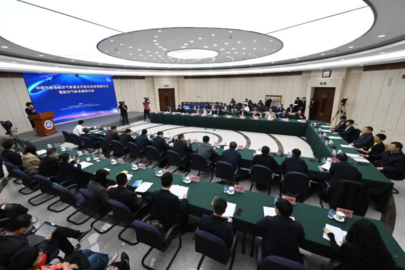 2023年4月21日,中国气象局航空气象重点开放实验室(以下简称“实验室”)揭牌仪式暨航空气象发展研讨会在京举行。来自中国气象局、中国民航局、中科院、清华大学、北京航空航天大学、中国商飞公司、中国国际航空公司、中国东方航空公司、中国南方航空公司、成都航空公司、中国航天空气动力技术研究院、国网电力空间技术公司、首都机场及有关行业机构、行业协会的60余位领导专家出席揭牌仪式并为航空气象发展建言。中国气象局、中国民航局有关领导及实验室依托单位领导到会致辞。揭牌仪式由新闻联播天气预报主持人王蓝一主持,研讨会由华风气象传媒集团董事长李海胜主持。